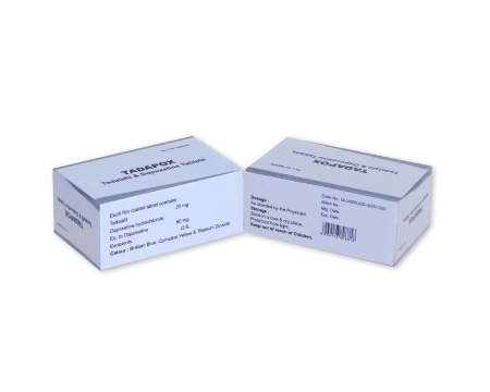 This drug is supplied in the form of tablets for oral use. There is only one dosage form of Tadapox available on the market. Each Tadapox tablet contains Tadalafil 20 mg + Dapoxetine 60 mg.